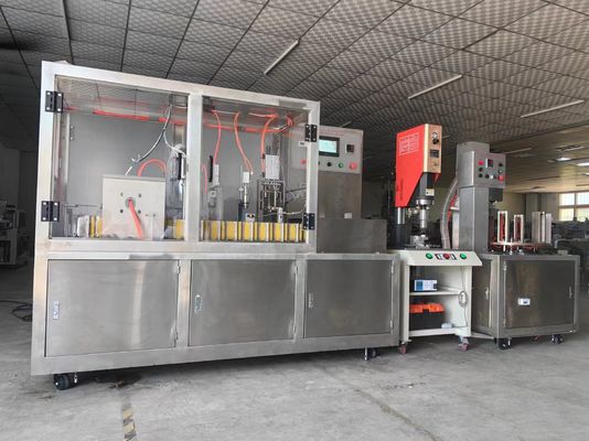 جریان فرآیند تجهیزات شامل چندین مرحله است. اول، قطعات کارتونی خریداری می شوند و به صورت دستی به ماشین تغذیه می شوند. سپس کارتونی ها تحت جوش فوق صوتی و قالب بندی مهر فشار قرار می گیرند.قبل از اینکه به صورت دستی بیرون کشیده و باز شودپس از باز کردن کارتون ها، کلاه ها از طریق کار دستی به آنها اعمال می شوند و سپس دوباره به جوش فوق صوتی برای مهر و موم کلاه ها در محل قرار می گیرند.سپس بسته های پر شده به مرحله نهایی منتقل می شوند.
